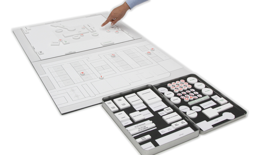Im Forschungsprojekt wurde mit stilisierten, proportionsgetreuen Grundrissplänen des OP-Traktes und der OP-Säle gearbeitet. Zum Tool-Kit gehören ebenfalls magnetische Spielsteine welche sowohl die Akteure als auch die Einrichtungsgegenstände eines OP-Saals maßstabsgetreu darstellen. Der Interviewte kann so ein reales Abbild seines Arbeitssystems einrichten und darauf aufbauend komplexe Prozesse erläutern. Um auf spontane Ereignisse adäquat reagieren zu können, besteht die Möglichkeit direkt mit Markern auf den Ausdruck zu skizzieren.